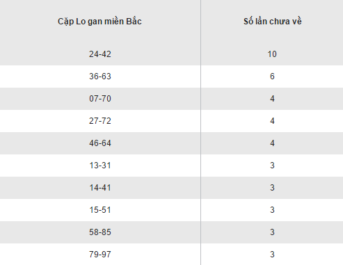 Hôm qua, bảng kết quả loto gan XSMB đã mang lại nhiều bất ngờ khi cặp gan 50, 45 và 59 đã biến mất khỏi bảng, thay vào đó là các cặp 06, 42, 36 trong khi cặp 99 vẫn duy trì thứ hạng quán quân trên bảng. Liệu hôm nay, kết quả XSMB có đem lại những điều bất ngờ và khả quan hơn cho các cặp loto gan có mặt trong bảng hay không? Cùng chờ đón nhé !