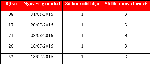 Lần phân tích này, các bộ số tổng 8 đều có mặt với sự xuất hiện mờ nhạt hơn, mỗi bộ số chỉ sở hữu cho mình một lần xuất hiện và số lần quay chưa về cũng khá cao là 3 lần. Hy vọng ở lần phân tích sau sẽ có những đột phá mới với các bộ số tổng 8 !