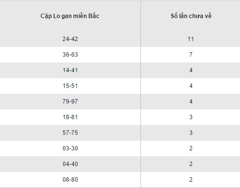 Hôm nay ngày 7/10/2016, bảng thống kê loto gan XSMB được Xs24h xây dựng dưới đây với mục đích thống kê đầy đủ và chính xác những cặp đôi lâu ngày chưa về nhất tính đến thời điểm hiện tại. Các cặp loto gan được thống kê dựa trên những số lần về ít hơn của các cặp loto từ 00-99. Nếu có ý định tham gia thử vận may với một con số nào đó thì nên tham khảo, cân nhắc thật kỹ trước khi đưa ra quyết định để không bỏ lỡ vận may đến với mình nhé !