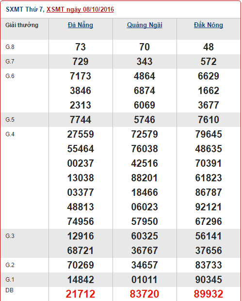 Trước khi đi vào bài phân tích kết quả XSMT quen thuộc hôm nay trước giờ quay thưởng, hãy cùng chúng tôi điểm lại tình hình kết quả Xổ số miền Trung ở lần quay trước ngày 08/10/2016 nhé!