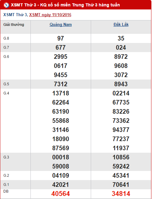 Hôm nay ngày 18/10/2016, sau một tuần thì xổ số miền Trung đã mang những vòng quay may mắn trở lại với anh em chơi số các tỉnh Quảng Nam và Đắk Lắk. Trước khi đến với kết quả quay thưởng vào chiều nay, Xổ số 24h mời quý vị và các bạn cùng đi vào tổng hợp kết quả XSMT trong 30 ngày quay gần nhất nhé !