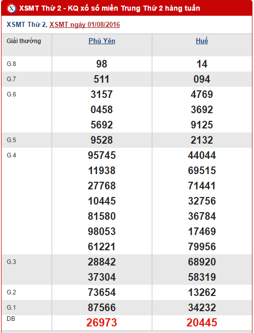 Đến hẹn lại lên, XSMT hôm nay thứ 2 mở thưởng tại các tỉnh Phú Yên và Thừa Thiên Huế, mời các bạn theo dõi kết quả vào cuối ngày nhé. Bây giờ, chúng ta sẽ cùng điểm lại tình hình KQXS miền Trung các tỉnh Phú Yên, Huế ở lần quay trước ngày 1/8/2016 nhé!