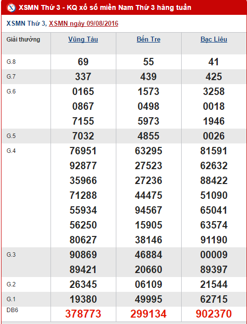 Hôm nay ngày 16/08/2016, như thường lệ XSMN với lượt quay số tại các tỉnh Vũng Tàu, Bến Tre và Bạc Liêu vào lúc 16h20 chiều nay. Trước đó, mời quý vị và các bạn cùng Xs24h điểm lại tình hình kết quả xổ số Miền Nam ở lần quay trước ngày 09/08/2016.