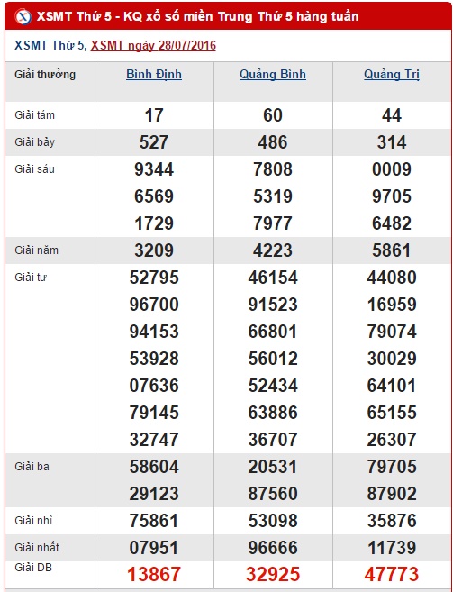 Một tuần lễ trôi qua, hôm nay XSMT đã quay trở lại với các anh em tỉnh Bình Định, Quảng Bình và Quảng Trị. Trước khi đến với kết quả quay số hôm nay, Xổ số 24h xin mời các bạn cùng điểm qua tình hình kết quả Xổ số miền Trung tại các tỉnh Bình Định, Quảng Bình, Quảng Trị ở lần quay trước nhé!