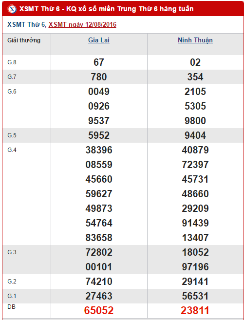 Lượt quay thưởng của XSMT hôm nay sẽ đồng loạt diễn ra vào lúc 17h15 tại các tỉnh Gia Lai và Ninh Thuận. Sau đây, hãy cùng Xs24h đi vào nội dung thống kê, phân tích kết quả xổ số miền Trung ngày hôm nay 19/08/2016. Trước hết, mời các bạn cùng điểm qua tình hình XSMT lần quay trước ngày 12/08/2016 nhé !