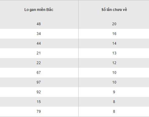 Thống kê loto gan XSMB thứ 2 ngày 29/08/2016