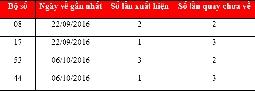 Quan sát kết quả bảng thống kê trên của Xổ số Bình Thuận, ta thấy xuất hiện các cặp số có tổng 8 bao gồm: 08, 17, 53 và 44. Trong đó cặp số 53 ấn tượng với tần suất xuất hiện 3 lần, số lần quay chưa về là 2 lần.