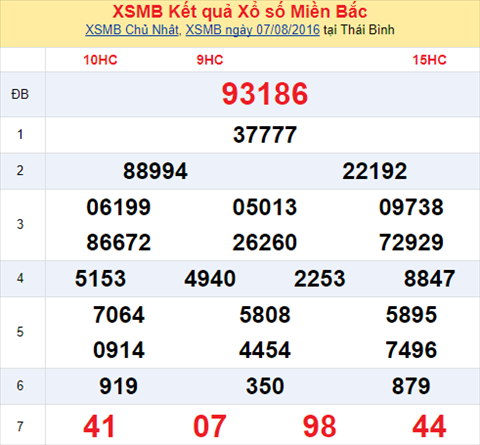 Hãy cùng chúng tôi theo dõi kết quả vào cuối ngày nhé. Còn bây giờ, Xổ số 24h xin gửi đến các bạn nội dung bài tổng hợp, phân tích kết quả xổ số miền Bắc hôm nay nhé. Và trước khi đi vào nội dung chính, hãy cùng điểm lại tình hình kết quả XSMB hôm qua ngày 07/08/2016 nhé !