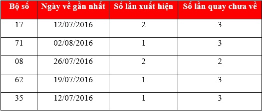 Từ việc thống kê kết quả XSBTR trong 1 tháng từ 09/07/2016 đến 09/08/2016 theo tổng 8 ta có bảng thống kê sau: