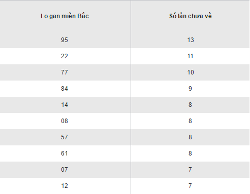 Sau kết quả XSMB ngày hôm qua, bảng kết quả loto gan XSMB vừa có sự thêm bớt các cặp số vừa có sự chuyển dịch về vị trí các cặp số cũ trong bảng, cặp loto 95 hiện tại đang là loto gan lì nhất khi có tới 13 lần quay chưa về. Cùng chờ đón kết quả XSMB hôm nay ngày 21/09/2016 để tiếp tục cập nhật những thay đổi của bảng loto gan miền Bắc nhé !