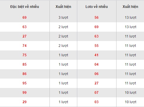Quan sát bảng thống kê các cặp loto về nhiều trên đây của XSHCM ta thấy, bộ số 56 và 69 đang dẫn đầu bảng với 13 lần xuất hiện, ngày về gần đây nhất vào 10/08/2016 (bộ 56) và ngày 27/08/2016 (bộ 69). Tiếp theo đó là các bộ 63, 55, 41, 04, 06, 27 đều cùng sở hữu 11 lần về. Bộ 07 và 03 là hai bộ số xếp chót bảng khi chỉ có 10 lần xuất hiện trong 30 ngày gần đây nhất.