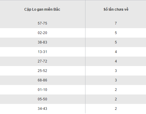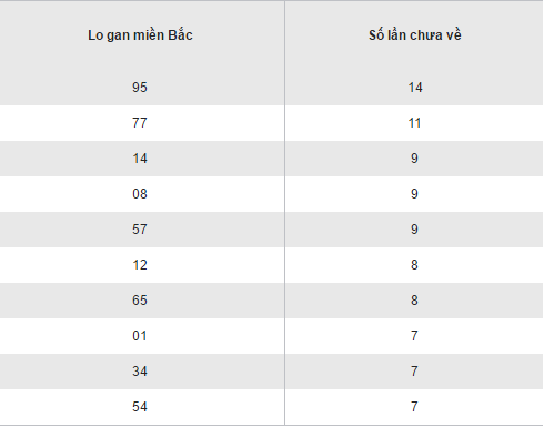 Hôm qua là một ngày khá đẹp với XSMB, bảng kết quả loto gan XSMB vẫn luôn có sự chuyển dịch đều đặn về cả vị trí và số lượng cặp loto ra vào bảng. Cặp 95 vẫn giữ nguyên vị trí đầu bảng khi sở hữu tới 14 lần quay chưa về. Liệu hôm nay, kết quả XSMB có đem lại sự thay đổi khả quan hơn cho các cặp loto gan có mặt trong bảng hay không? Hãy cùng chờ đón nhé !