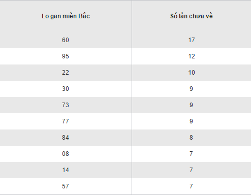 Dưới đây sẽ là bảng thống kê loto gan XSMB hôm nay ngày 20/09/2016 được Xổ số 24h xây dựng với mục đích thống kê đầy đủ và chính xác những cặp đôi lâu về nhất tính đến thời điểm hiện tại. Các cặp số được thống kê dựa trên những số lần về ít hơn của các cặp loto từ 00-99. Các bạn tham gia chơi số hãy tham khảo, cân nhắc thật kỹ trước khi đưa ra quyết định đầu tư cho một cặp số để không bỏ lỡ vận may đến với mình nhé !