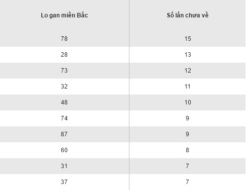 Thống kê loto gan XSMB thứ 2 ngày 03/10/2016