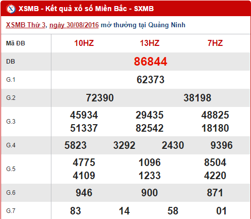 Kết quả XSMB hôm qua đã gây nhiều bất ngờ cho anh em chơi số. Liệu buổi quay thưởng hôm nay có làm cho anh em hài lòng hơn hay không ? Hãy chờ đón kết quả quay thưởng vào chiều nay nhé, còn bây giờ như thường lệ sẽ là bài tổng hợp, phân tích kết quả XSMB hôm nay ngày 31/08/2016. Trước tiên, hãy cùng chúng tôi review lại kết quả hôm qua ngày 30/08/2016 nhé !