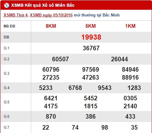 Như thường lệ hôm nay thứ 5 ngày 6/10/2016, XSMB mở thưởng tại thủ đô Hà Nội lúc 18h15 chiều nay. Trong khi chờ đợi kết quả quay thưởng, hãy cùng Xổ số 24h đi vào nội dung tổng hợp, thống kê và phân tích kết quả XSMB quen thuộc hàng ngày. Trước tiên, cùng chúng tôi điểm lại những con số đã góp mặt trong bảng kết quả ngày hôm qua 5/10/2016 nhé !