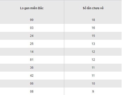 Thống kê loto gan XSMB thứ 6 ngày 14/10/2016