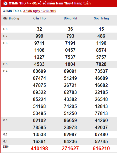 Lượt quay của Xổ số miền Nam hôm nay sẽ diễn ra tại các tỉnh Cần Thơ, Đồng Nai và Sóc Trăng. Trước khi đến với kết quả, Xổ số 24h xin gửi đến quý vị và các bạn bài tổng hợp và thống kê XSMN hôm nay 19/10/2016. Mở đầu là bảng review kết quả XSMN ở lần quay trước ngày 12/10/2016.