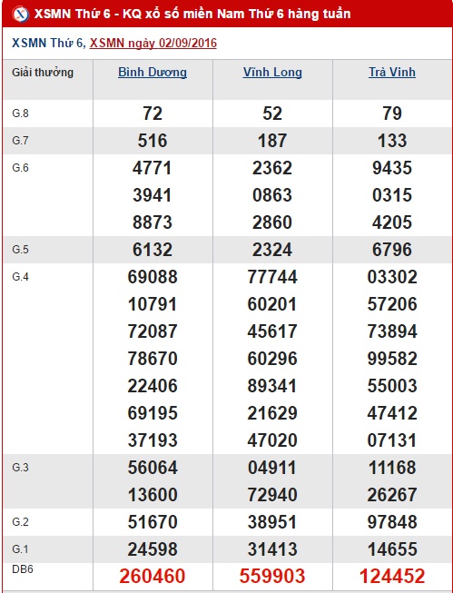 Trước hết, cùng điểm lại tình hình kết quả xổ số Miền Nam ở lần quay trước ngày 2/9/2016 nhé !