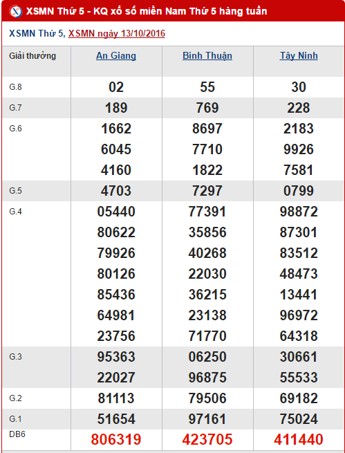 Hôm nay thứ 5, xổ số miền Nam đã quay trở lại với các tỉnh An Giang, Bình Thuận và Tây Ninh, kết quả sẽ được cập nhật vào cuối giờ chiều nay. Sau đây, như thường lệ sẽ là bài tổng hợp, thống kê kết quả XSMN thử 5 trong 30 ngày gần nhất, mời các bạn cùng theo dõi !