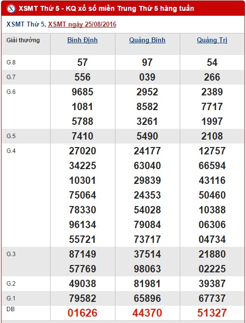 Sau đây, trước khi đến với kết quả quay thưởng hôm nay của XSMT, mời quý vị và các bạn cùng chúng tôi điểm lại tình hình kết quả xổ số Miền Trung ở lần quay trước ngày 25/8/2016 nhé !