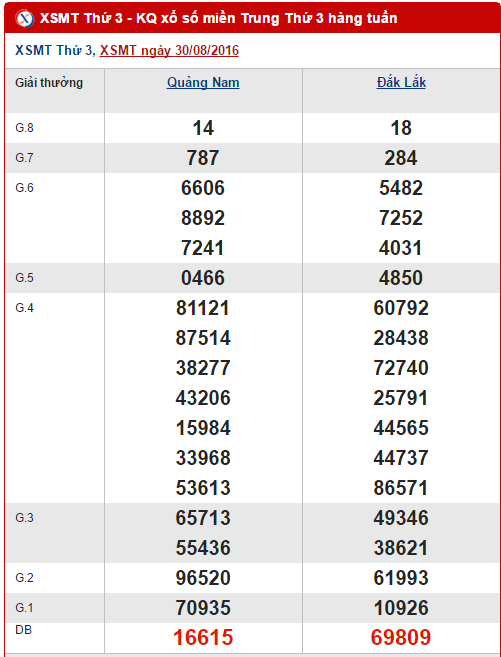 Như thường lệ, trước khi đến với kết quả quay thưởng hôm nay ngày 06/09/2016 của XSMT, xin mời các bạn cùng đến với nội dung bài tổng hợp, phân tích kết quả miền Trung hôm nay mở đầu bằng bảng review kết quả lần quay trước ngày 30/08/2016 nhé !