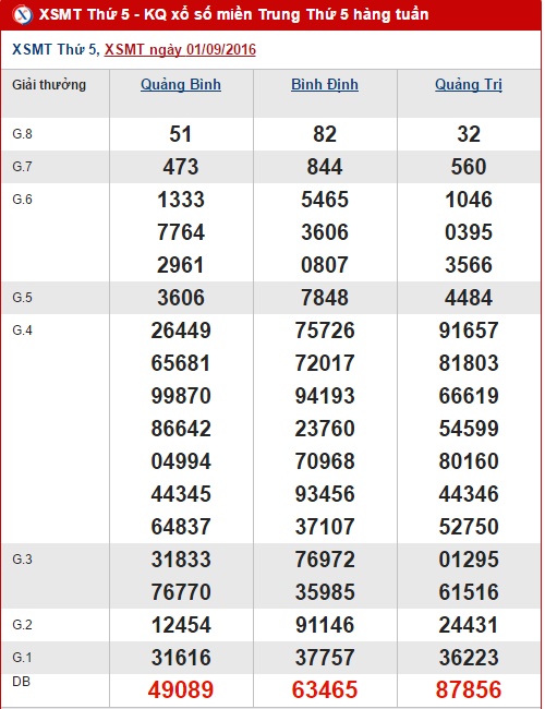 Như thường lệ, trước khi đến với kết quả quay thưởng hôm nay của XSMT, mời quý vị và các bạn cùng Xs24h điểm lại tình hình kết quả XSMT ở lần quay trước ngày 01/09/2016 nhé !