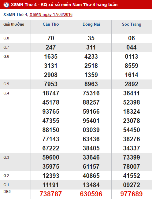 Hôm nay thứ 4 ngày 24/08/2016, những vòng quay của XSMN đã quay trở lại với các tỉnh Cần Thơ, Đồng Nai và Sóc Trăng. Sau đây, như thường lệ Xs24h xin gửi đến các bạn nội dung tổng hợp, phân tích kết quả Xo so mien Nam trước giờ quay số.