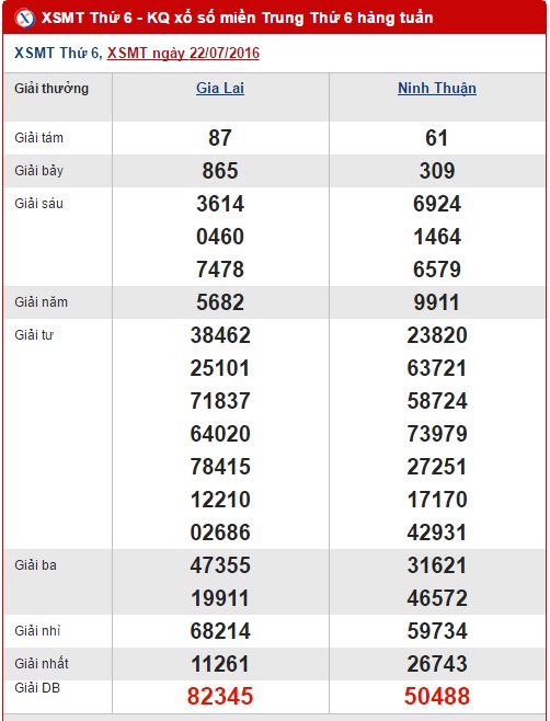 XSMT Thứ 6 - Một tuần lễ trôi qua, hôm nay đã là thứ 6 ngày 28/07/2016, như thường lệ XSMT sẽ mở thưởng tại Gia Lai và Ninh Thuận. Trước khi đến với kết quả quay thưởng chiều nay của Xo so mien Trung, hãy cùng chúng tôi tổng hợp và đánh giá lại những con số đã góp mặt trong lần quay trước nhé !