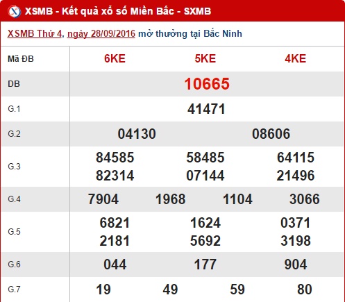 Như thường lệ hôm nay thứ 5 ngày 29/09/2016, XSMB mở thưởng tại thủ đô Hà Nội lúc 18h15 chiều nay. Trong khi chờ đợi kết quả quay thưởng, hãy cùng Xổ số 24h đi vào nội dung tổng hợp, thống kê và phân tích kết quả XSMB quen thuộc hàng ngày. Trước tiên, hãy cùng điểm lại những con số đã góp mặt trong bảng kết quả ngày hôm qua 28/09/2016 nhé !