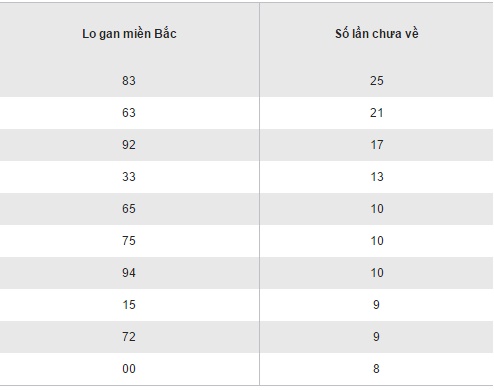 Thống kê loto gan XSMB thứ 2 ngày 01/08/2016