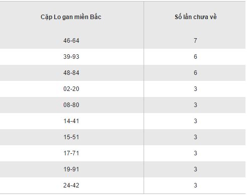 Sau đây Xổ số 24h xin mời các bạn cùng theo dõi Thống kê loto gan XSMB thứ 2 ngày 15/08/2016 chính xác nhất, thống kê những cặp đôi lâu về nhất tính đến thời điểm hiện tại. Các cặp số này được thống kê dựa trên những số lần về ít hơn của các cặp loto từ 00-99. Lời khuyên cho các bạn khi tham gia chơi số đó là hãy tham khảo và cân nhắc thật kỹ trước khi đầu tư cho mình một bộ số nhé !